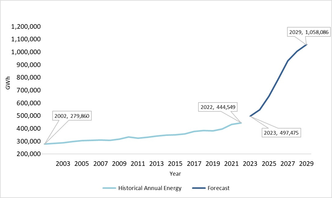 The average energy growth is even more aggressive, rising by 13.6% in the period of 2024-2033. The historical energy growth from 2014-2024 is 3.1%.