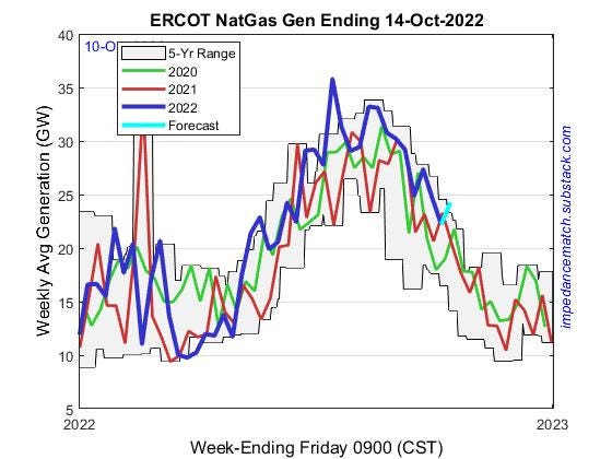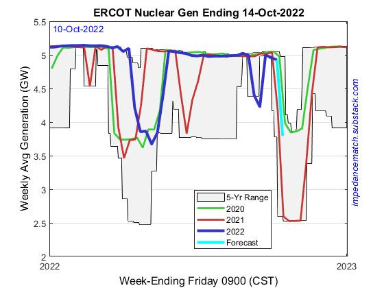 Nuclear generation is expected to be about 3.79 GW versus 4.92 GW last week. Refueling appears to have begun at South Texas 2.