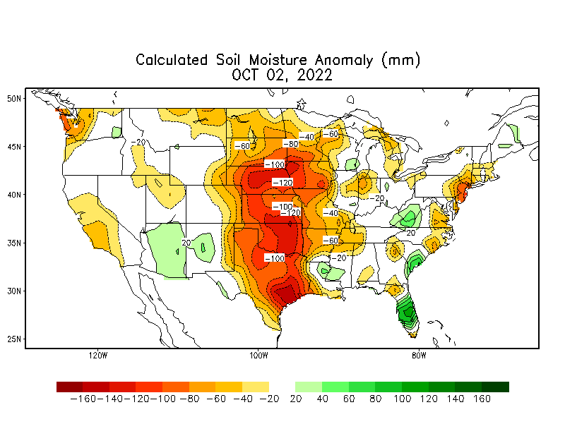 The soil moisture deficit expanded further this past week. This is less of an issue in the fall and winter. The rain should lower deficits in the North and West.