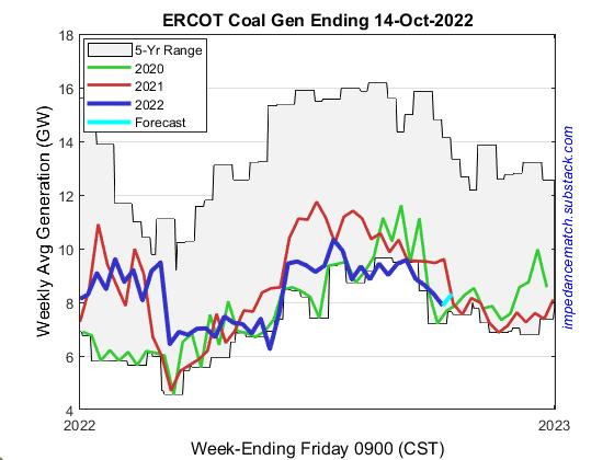 Coal power production has been at the bottom of the 5-year band and that is not expected to rise appreciably. The forecasted increase is assuming coal will pick up some of the nuclear that is out for refueling, and this may not be correct.
